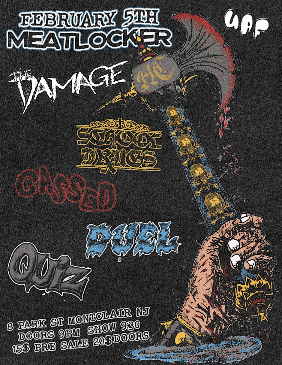 THE DAMAGE, SCHOOL DRUGS, DUEL, GASSED, QUIZ